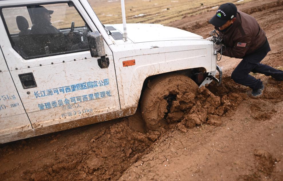 迎著飛濺的泥點(diǎn)推車、躺在泥巴地里修車,一路走、一路陷,到卓乃湖保護(hù)站約140公里的路程,我們走了10個(gè)小時(shí),晚上七點(diǎn)多,終于抵達(dá)目的地。