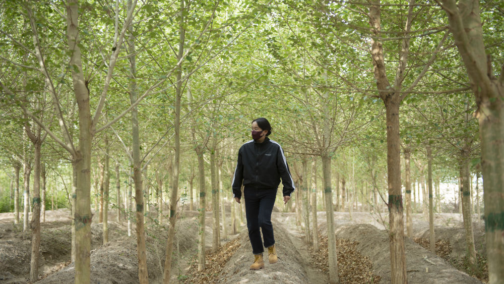 “白天氣溫二十五六攝氏度,晚上卻降到零下,還沒發(fā)芽的樹苗哪經得起這種折騰,種下去不久就死了好多。最要命的是澆水,水質多鹽堿,還不夠澆。如果起了風沙,沙子能把樹皮磨禿?!边^去的種樹經歷在潘海軍的眼前重現(xiàn),“死一棵我們種兩棵,那個時候像憋著一股勁,一定要把樹種活!”
