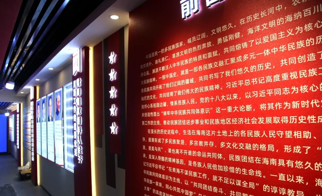 體驗館由“淵源流長、共同書寫海南悠久歷史”“命運與共、共繪中華民族共同體底色”“團結(jié)奮斗、共建中華民族共同體”“人杰地靈、共同孕育圣潔海南”“繼往開來,共圓偉大復(fù)興中國夢”五個篇章十八個單元組成,展陳布局完整、內(nèi)容新穎、特色鮮明,是展示海南悠久歷史的“隧道”、改革發(fā)展成果的“窗口”、參觀學(xué)習(xí)交流的“平臺”、各民族交往交流交融的“陣地”。