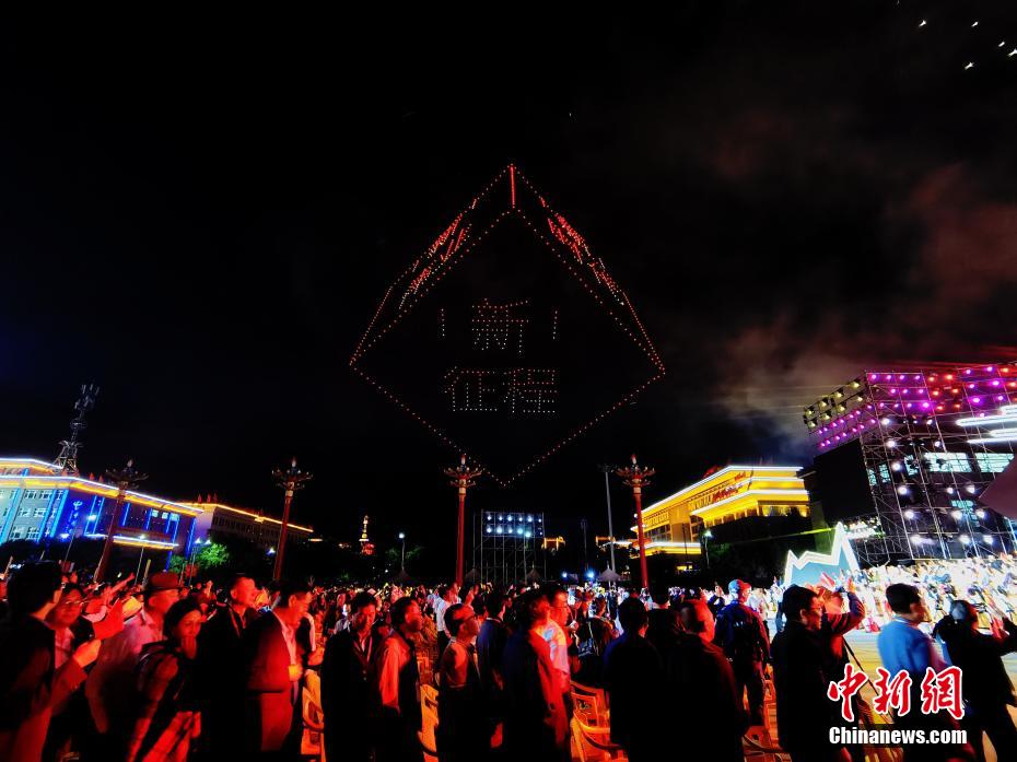 圖為無人機(jī)秀現(xiàn)場,無人機(jī)組成“民族團(tuán)結(jié)的國家最團(tuán)結(jié)”字樣。祁增蓓 攝