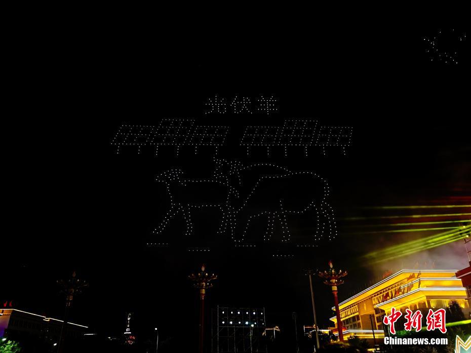 圖為無人機(jī)秀現(xiàn)場,無人機(jī)組成“光伏羊”字樣。祁增蓓 攝