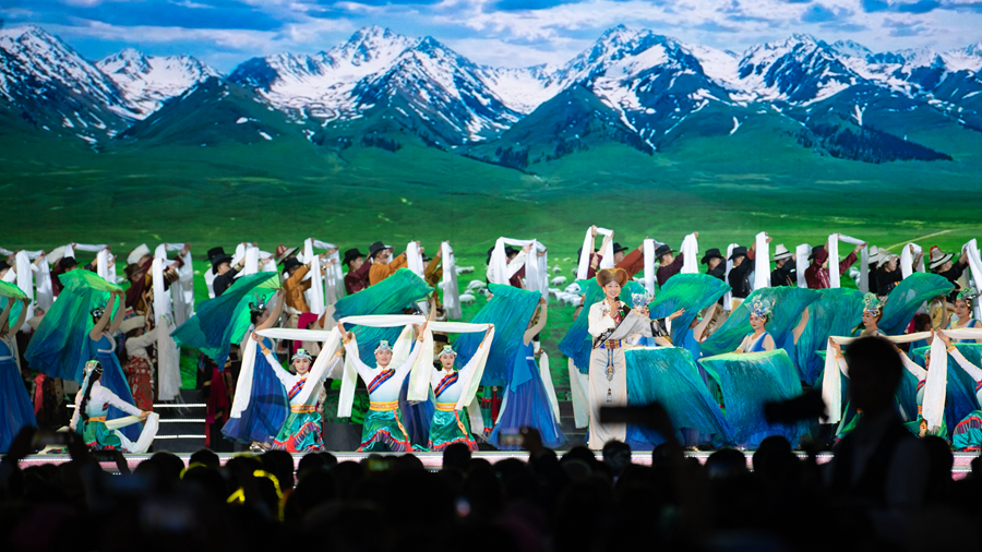 演出現(xiàn)場,燈光秀、曲藝表演、民族歌舞、服飾展演、情景朗誦等綜合藝術(shù)形式輪番上演,為現(xiàn)場觀眾獻(xiàn)上了一場精彩的視聽盛宴。其中,海南州藏族服飾藝術(shù)嘉年華是當(dāng)?shù)刈罹哂绊懥Φ拿褡逦幕放?,也是?dāng)?shù)厝罕娚钪械乃囆g(shù)盛會(huì)?;顒?dòng)將傳統(tǒng)藏族服飾品牌與創(chuàng)新服飾時(shí)尚品牌融為一體,通過藏族傳統(tǒng)服飾和現(xiàn)代服飾展演,充分展示了海南州豐富多彩的藏族服飾文化魅力。
