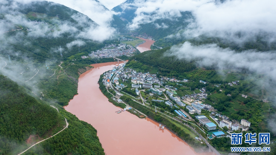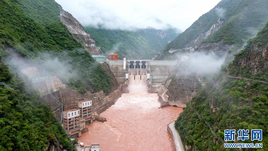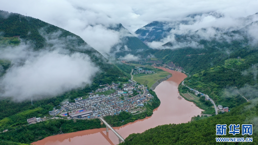 航拍鏡頭下云霧繚繞的烏弄龍水電站(7月29日攝)。新華網(wǎng) 趙普凡 攝