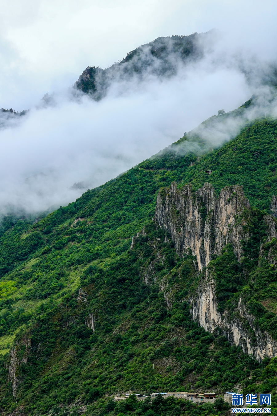 云霧下的村莊(7月29日攝)。新華網(wǎng) 趙普凡 攝