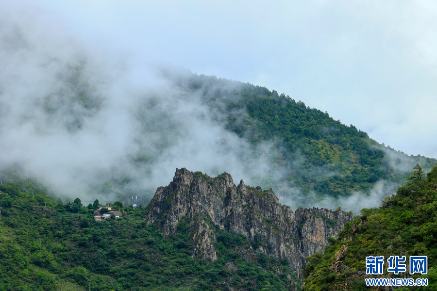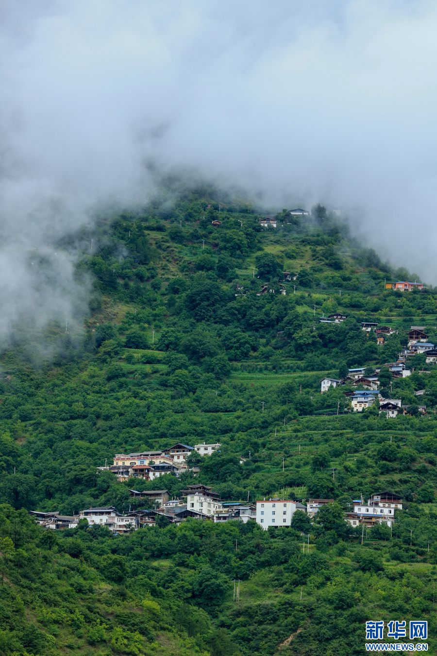 若影若現(xiàn)的村莊(7月29日攝)。新華網(wǎng) 趙普凡 攝