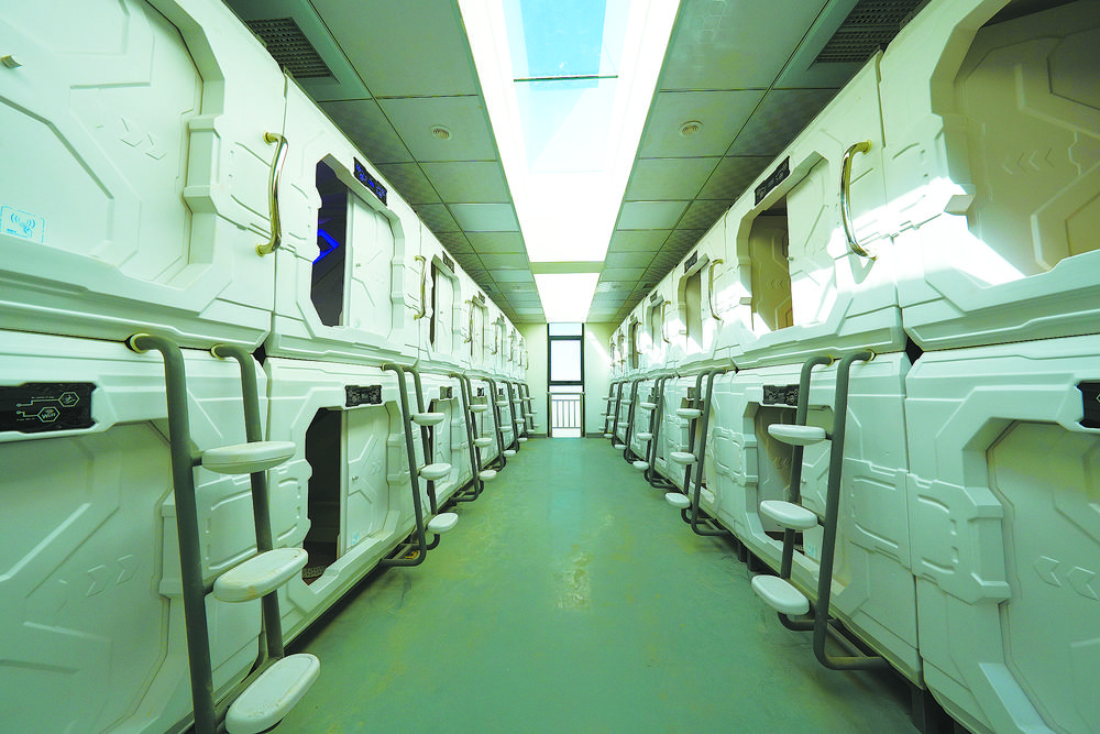 “我們的建筑風(fēng)格是模擬未來(lái)人類(lèi)移居火星后的生存環(huán)境,有‘總部大樓’‘火星艙’等?!表樦衩袷种傅姆较颍虐l(fā)現(xiàn),原來(lái)那些白色集裝箱正是營(yíng)地建筑的主體。