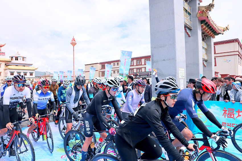8月11日下午2點,隨著發(fā)令笛聲鳴響,金馬草原·自行車天路挑戰(zhàn)賽正式激情開賽,來自全國各地100余名自行車騎手在色達共赴一場別開生面的體育盛宴。