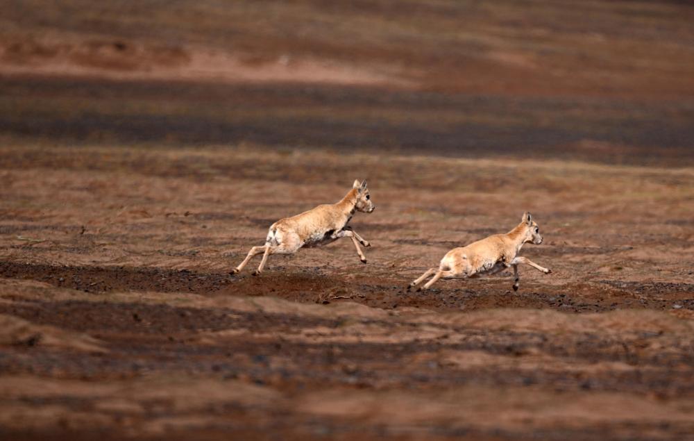 藏羚羊在卓乃湖附近活動(6月18日攝)。新華社記者 張宏祥 攝