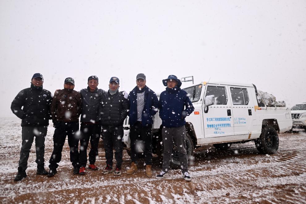 可可西里管理處卓乃湖保護(hù)站隊(duì)員在前往卓乃湖保護(hù)站途中遭遇大雪(6月16日攝)。新華社記者 張宏祥 攝