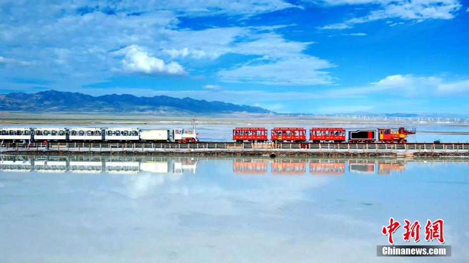 茶卡鹽湖倒映出的游覽小火車(chē)。茶卡鹽湖景區(qū) 供圖