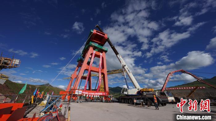 圖為瑪爾擋水電站首臺壩頂門機(jī)順利完成吊裝。趙成悅 攝