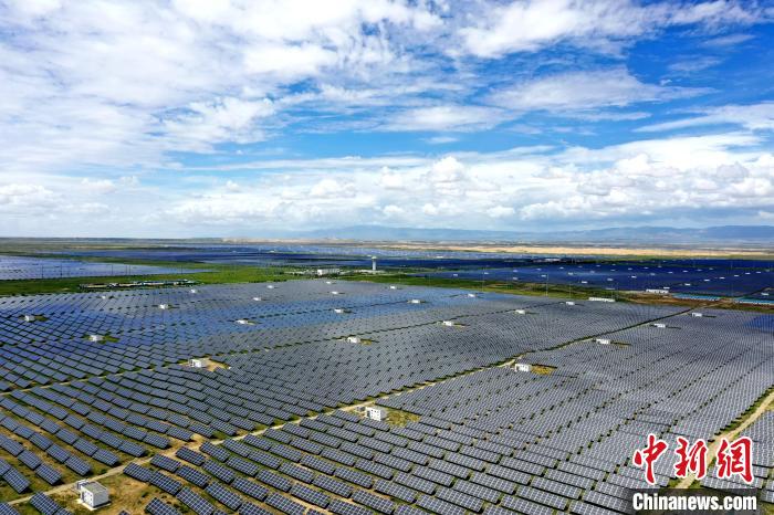 在青海海南藏族自治州共和縣塔拉灘,一場(chǎng)巨大的變革正在發(fā)生:超過(guò)700萬(wàn)塊深藍(lán)色光伏板在綠色草甸上展開,昔日“風(fēng)吹石頭跑”的蒼涼景象已不復(fù)存在。