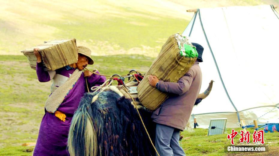 青海湖北岸剛察草原牧民正在運(yùn)行李。桑吉才讓 攝
