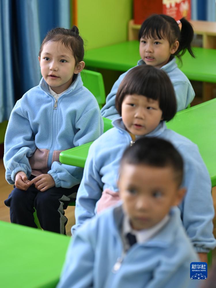 9月4日,青海省果洛藏族自治州阿尼瑪卿幼兒園小朋友在學(xué)習(xí)手指操。新華社記者 張龍 攝