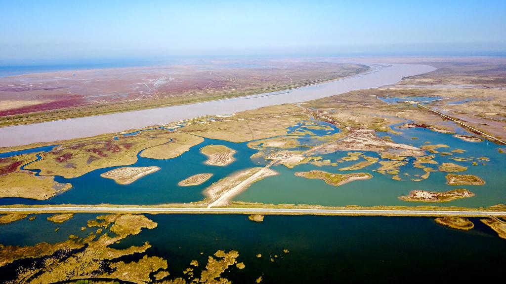 近年來,黃河三角洲國家級自然保護區(qū)建成“引、輸、蓄、排”科學生態(tài)補水體系,同時著力構(gòu)建“河—陸—灘—?!边B通體系,連通水系115公里,疏通潮溝76公里,恢復(fù)黃河與海洋的水文連通。原先的光板地、鹽堿灘,變成了水草豐茂、生物多樣性富集的大濕地。