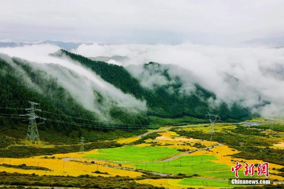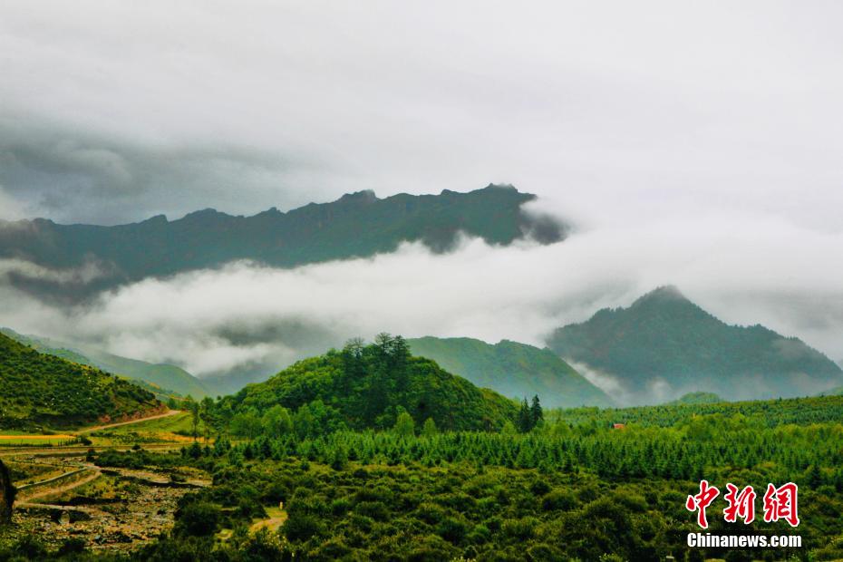 金秋9月,一場(chǎng)秋雨過(guò)后,青海省海南藏族自治州貴德縣山間云霧繚繞,白色云海像潔白的哈達(dá)飄落山間,與藍(lán)天、綠地相映成趣,風(fēng)光旖旎。