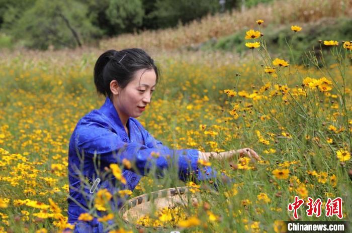 村民采摘高原雪菊。杜康琴 攝
