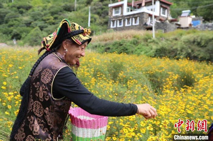 二嘎里村種植的高原雪菊迎來采摘季。杜康琴 攝