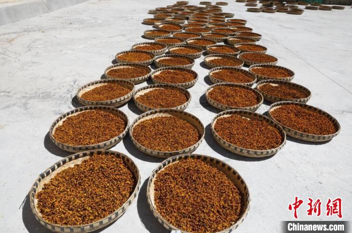 晾曬高原雪菊。侯明宏 攝