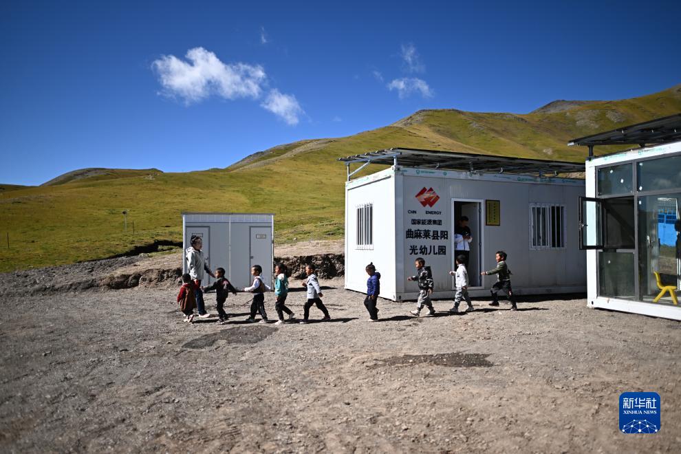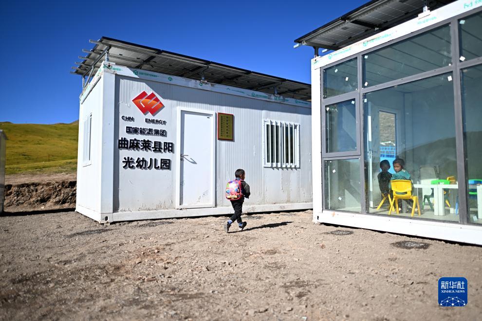 作為曲麻萊縣定點(diǎn)幫扶單位,國(guó)家能源集團(tuán)自2022年起累計(jì)投入1350萬(wàn)元,在曲麻萊縣建設(shè)15所陽(yáng)光幼兒園。陽(yáng)光幼兒園為集裝箱式房屋,配備屋頂離網(wǎng)儲(chǔ)能光伏系統(tǒng),可以滿(mǎn)足供暖、照明等需求。幼兒園招收居住在周邊牧場(chǎng)的兒童,讓孩子們?cè)陔x家不遠(yuǎn)處就能接受學(xué)前教育。