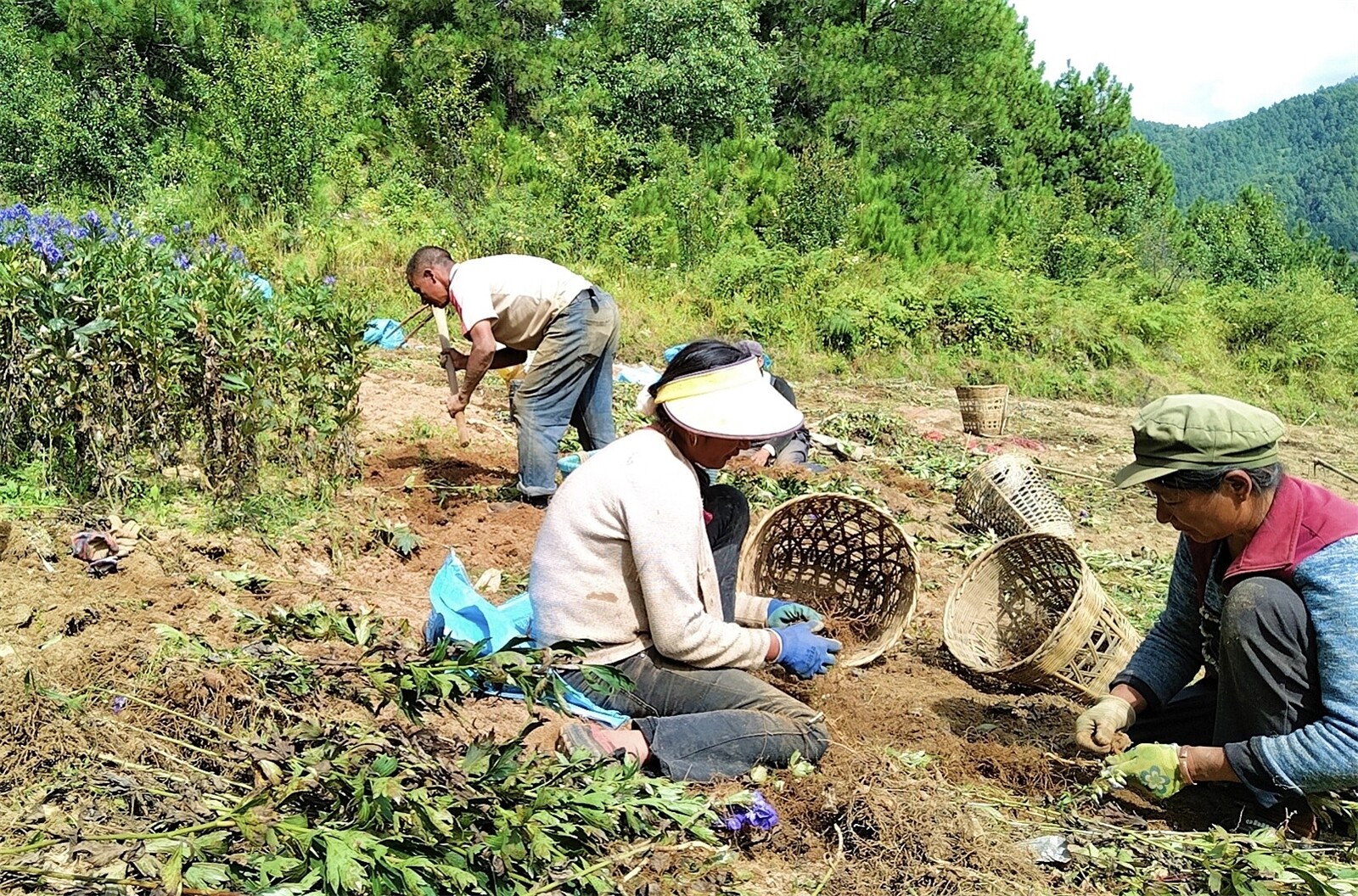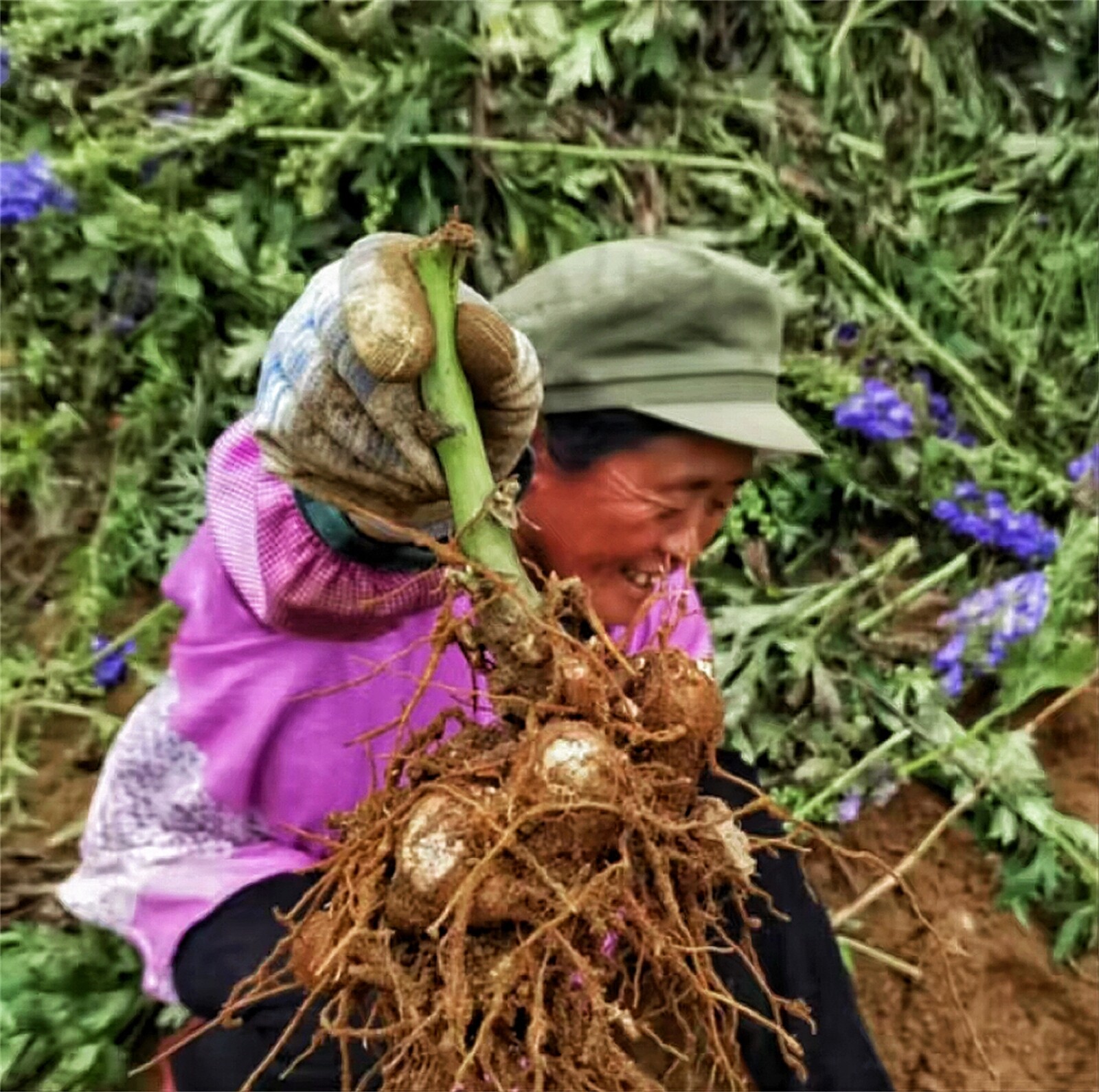 近日,維西傈僳族自治縣攀天閣鄉(xiāng)美洛村400余畝附子喜獲豐收。田間地頭,村民們?nèi)宄扇?,通力協(xié)作,將一顆顆采挖出來的附子收集成籮,集裝成袋,看著眼前的一袋袋附子,村民們都樂得合不攏嘴?!敖衲旮阶赢a(chǎn)量很高呢,按照去年的市場(chǎng)價(jià)今年一畝最多可有2萬收入”美洛村副主任和麗新說。