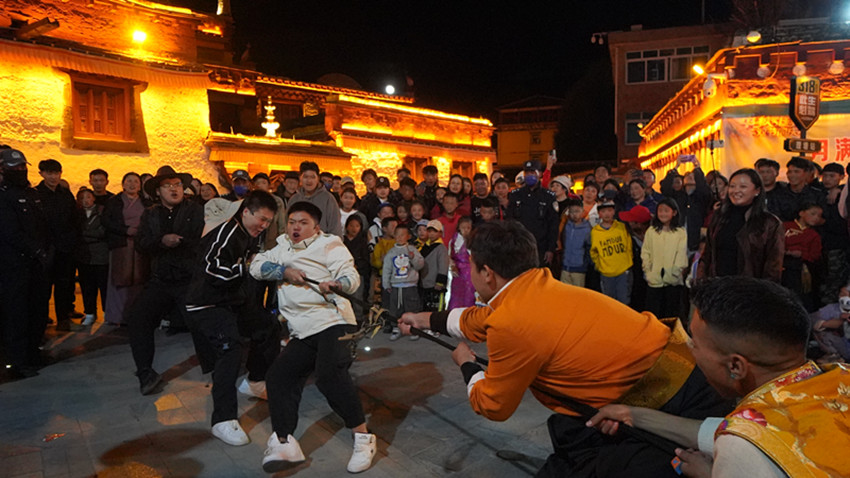 “江流宛轉(zhuǎn)繞芳甸,月照花林皆似霰……”農(nóng)歷八月十五,月色籠罩下的勒通古鎮(zhèn)·千戶藏寨,流淌著中華詩歌的悠悠古韻。9月29日晚,“我們的節(jié)日·中秋”新時代文明實踐系列活動之“月滿理塘、愛我中華”文藝展演,引得群眾和游客爭相拍照。藏戲舞蹈“扎西雪巴”、藏族踢踏舞讓觀眾領略到濃郁的民族風情,詩朗誦伴舞《我愛你,中國》引人入勝……一場場精彩演出展現(xiàn)了傳統(tǒng)文化的多重魅力。