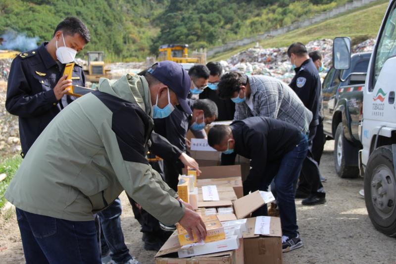 10月13日上午,迪慶州煙草專賣局聯(lián)合州市場監(jiān)督管理局、州公安局、州郵政管理局等相關部門,在香格里拉市垃圾處理廠舉行了假煙公開銷毀活動。