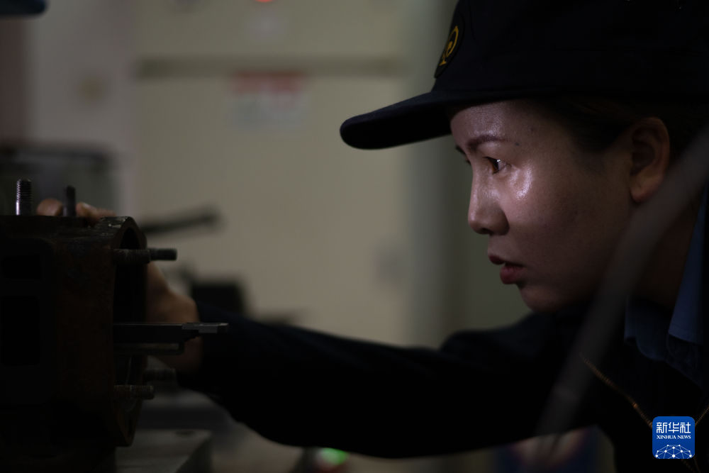 10月12日,在中國鐵路青藏集團(tuán)有限公司西寧東車輛段制動班組,馬婷在研磨120閥滑閥。新華社記者 張龍 攝