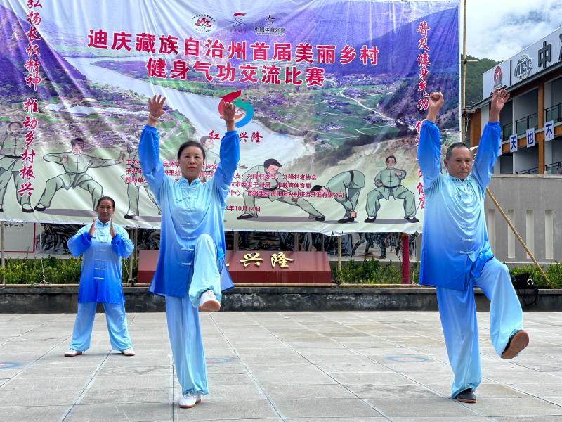 10月14日,迪慶州首屆美麗鄉(xiāng)村健身氣功交流比賽在香格里拉市金江鎮(zhèn)興隆村紅色研學(xué)基地開賽。此次比賽共有8支代表隊(duì)80名運(yùn)動(dòng)員參賽。