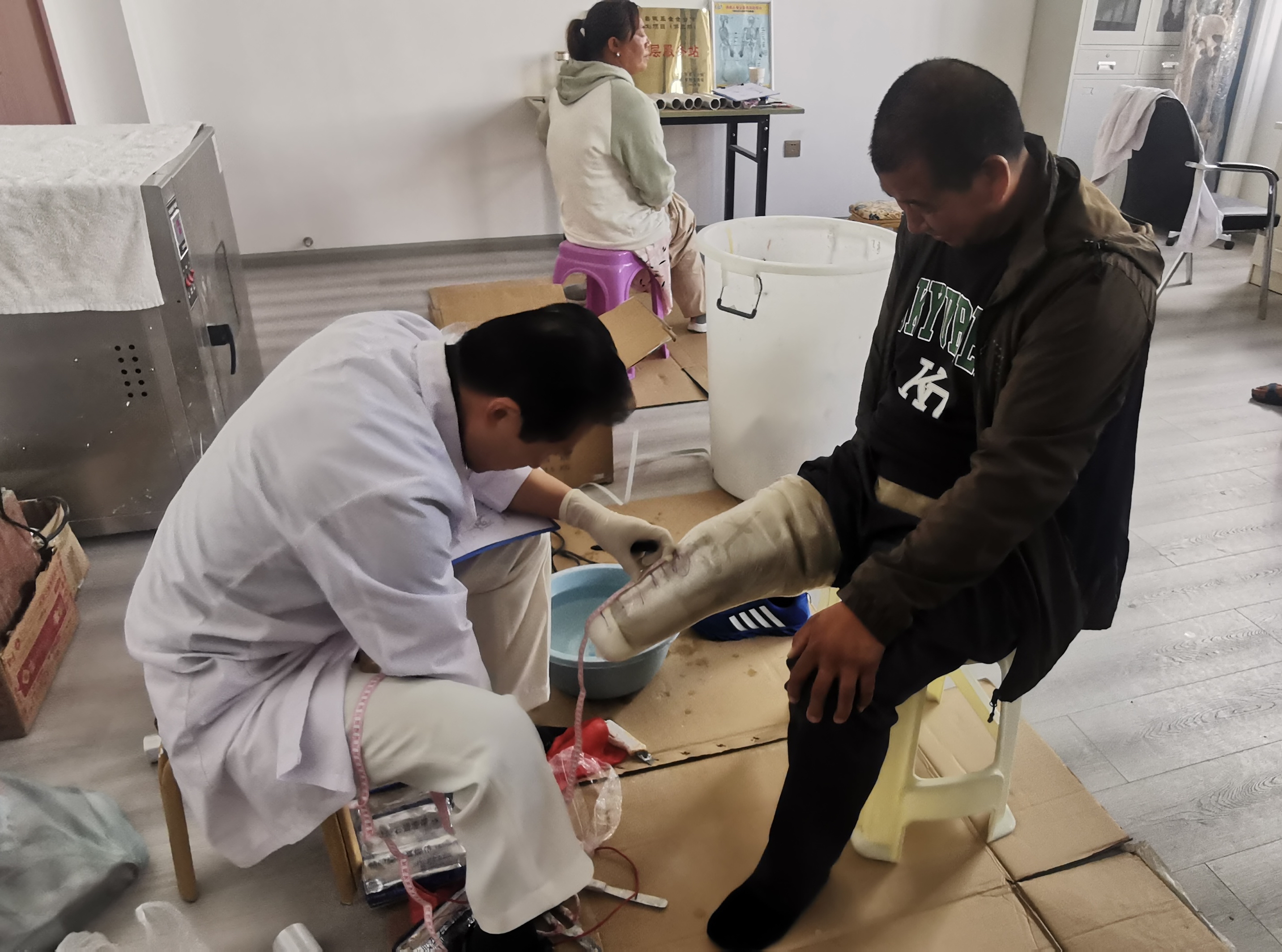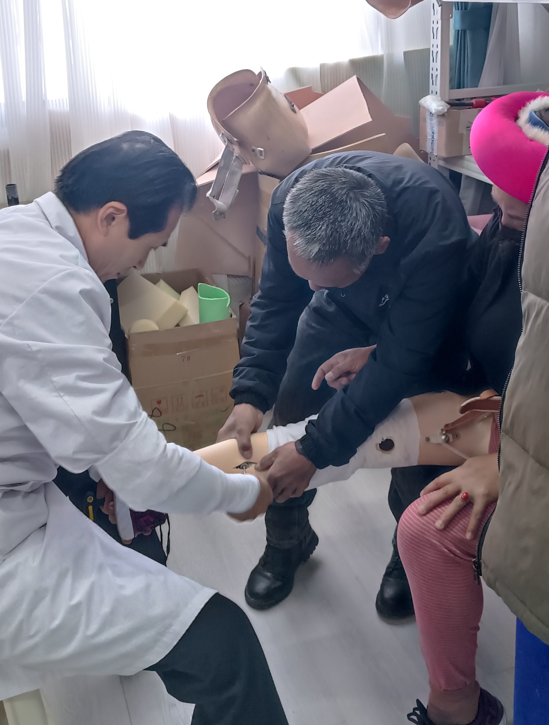 近日,在州康復(fù)中心,隨著30名肢體殘障群體的假肢適配成功,2023年省級殘疾人事業(yè)彩票公益金助聽器、假肢適配服務(wù)項目圓滿結(jié)束。據(jù)了解,該項目在今年還為我州300名聽力殘障群體免費適配助聽器。圖為醫(yī)生為肢體殘障人士適配假肢。
