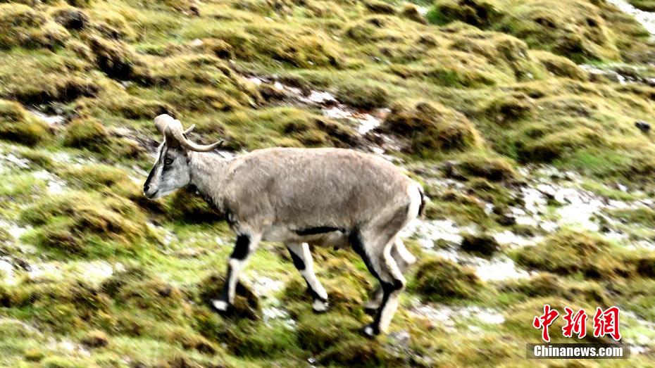 高原深秋,在青海湖北岸的青海省海北藏族自治州海晏縣甘子河鄉(xiāng)境內(nèi),攝影師拍攝到成群巖羊在溫泉濕地游走覓食。畫面中,巖羊“拖家?guī)Э凇痹谏狡律?、風(fēng)雪中奔跑覓食,甚是靈動。據(jù)悉,拍攝到成群巖羊的區(qū)域有一處熱水溫泉,溫泉四季噴涌不竭,水溫達(dá)57到60度,所以當(dāng)?shù)匦纬商赜械男夂?,讓深秋時(shí)的草原依然青綠。巖羊是國家二級保護(hù)動物,擅長“飛檐走壁”,在地形復(fù)雜的山崖上也能如履平地,青灰色的毛色與巖石顏色極為相近,不易察覺。