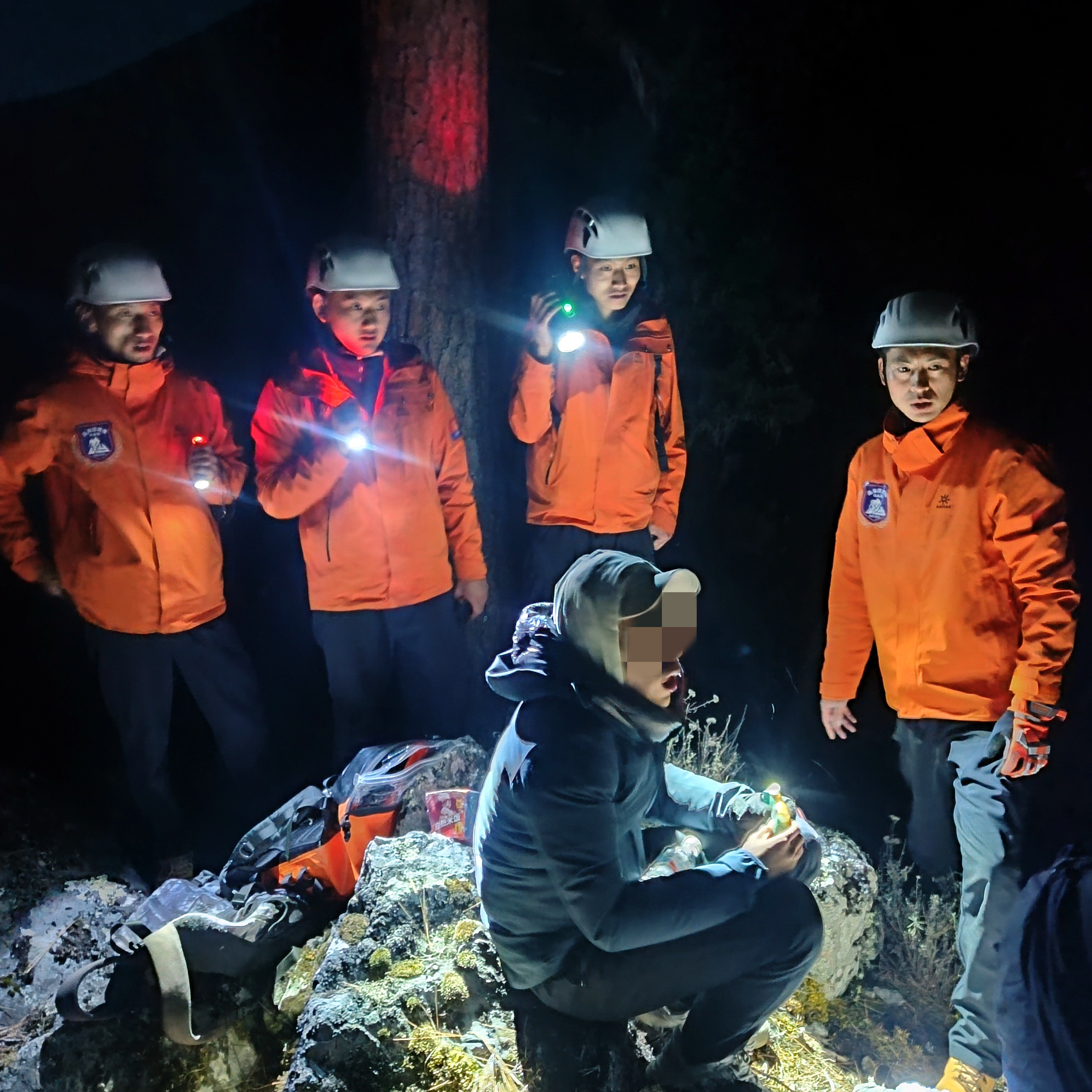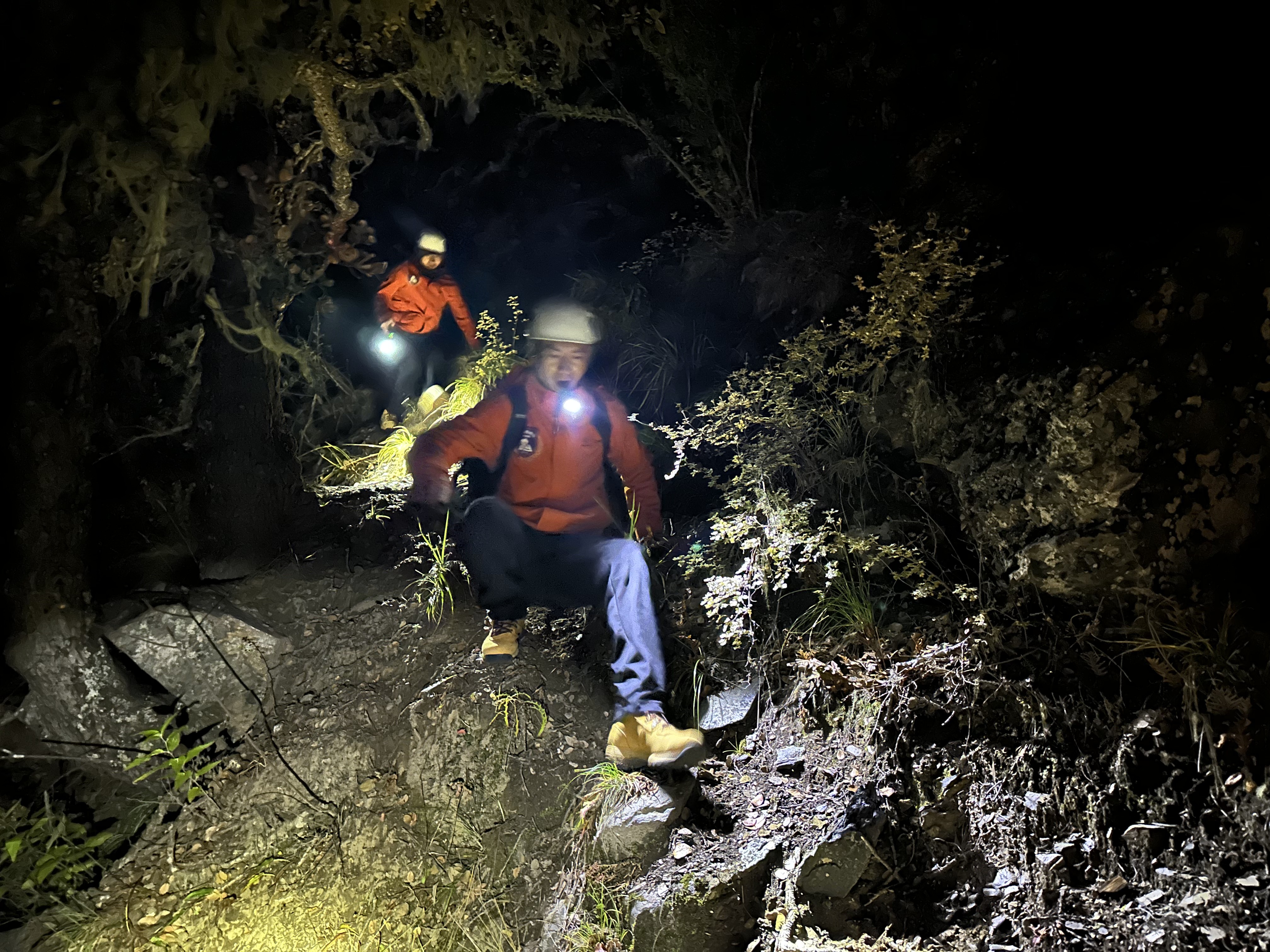 救援人員一邊與報警人保持聯(lián)系,一邊聯(lián)系當地鄉(xiāng)鎮(zhèn)干部及村民,了解地形地勢和搜救線路。21時23分,救援人員沿著崎嶇山路到達海拔近4000米被困現(xiàn)場。