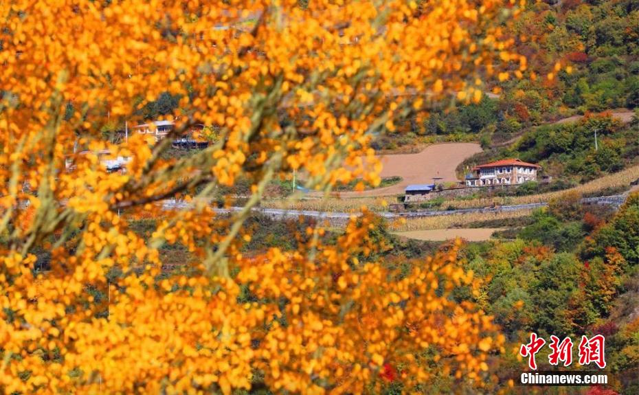 黑水縣彩林與藏寨相映成趣。黑水縣融媒體中心 供圖