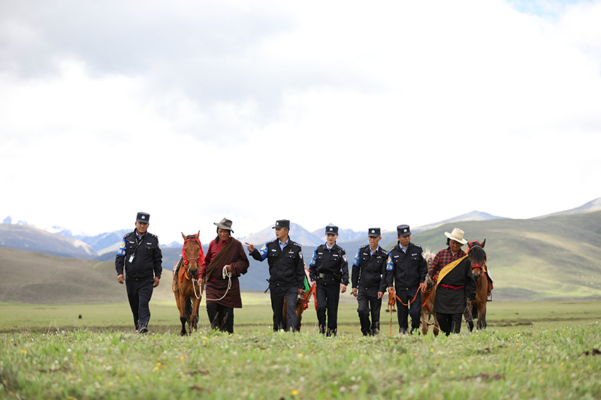 圖為省級“楓橋式公安派出所”——理塘縣公安局高城派出所民警在巡邏途中與牧民交談。 州公安局 供圖
