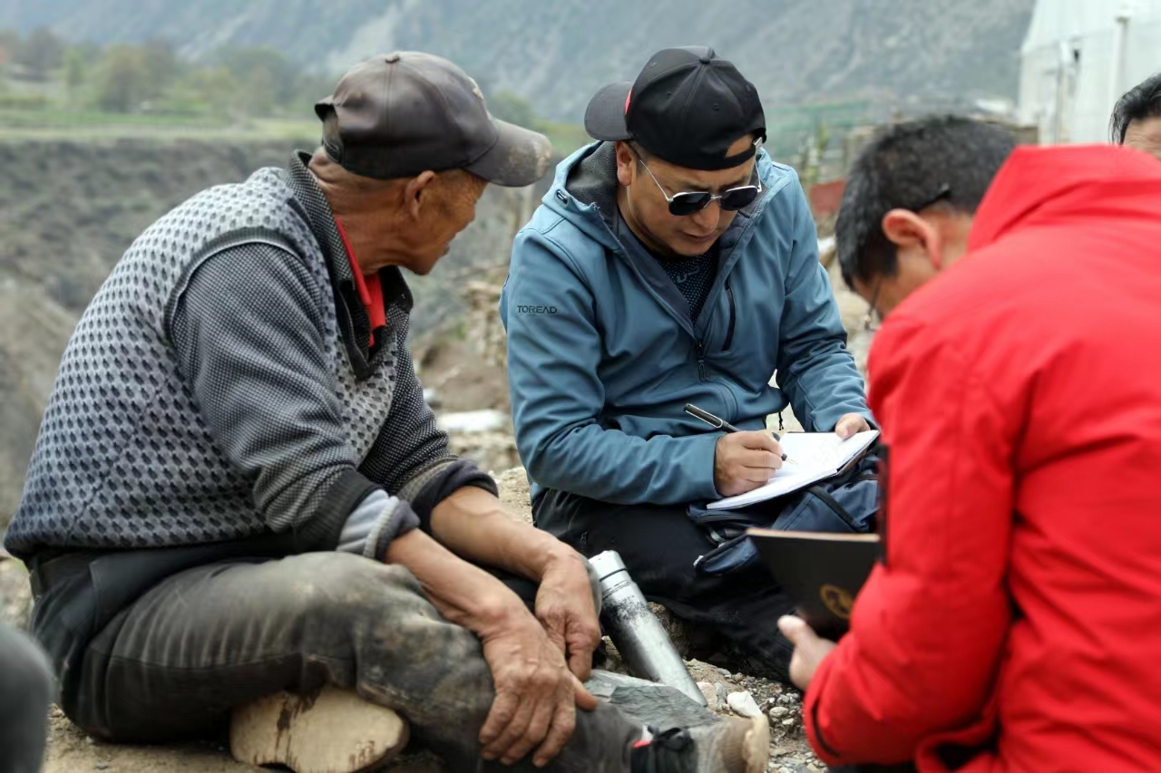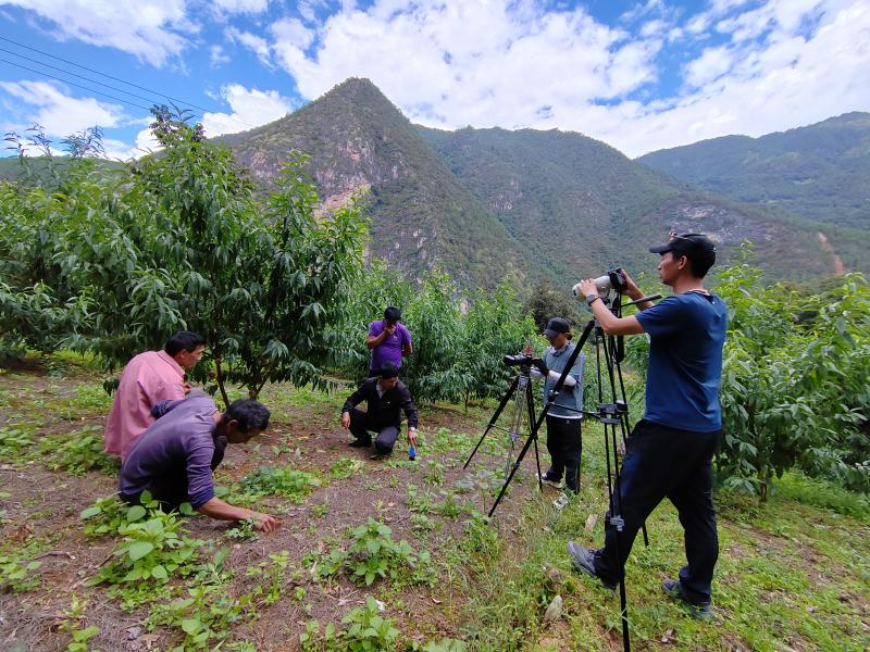 香格里拉市融媒體中心記者趙杰、初程江初在木高村采訪產業(yè)發(fā)展情況。