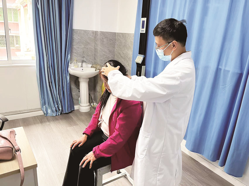 徐英俊通過(guò)檢查發(fā)現(xiàn)夫妻倆都患有較嚴(yán)重的退化性膝關(guān)節(jié)炎、關(guān)節(jié)腔積液、內(nèi)外側(cè)韌帶受損等疾病。經(jīng)過(guò)慎重考慮,徐英俊決定為其進(jìn)行中西醫(yī)結(jié)合治療,并為他們制定了一套詳細(xì)全面的治療方案。超聲引導(dǎo)下關(guān)節(jié)穿刺、超聲引導(dǎo)下隱神經(jīng)阻滯、頰針療法、針刺療法……徐英俊因地制宜開(kāi)展了多項(xiàng)新技術(shù)、新項(xiàng)目,效果立竿見(jiàn)影。