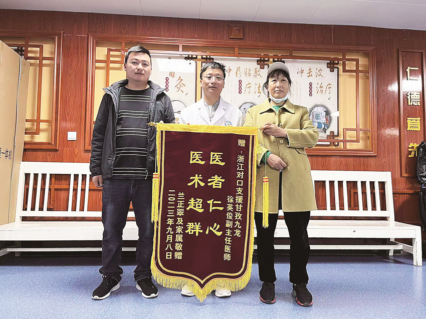“除病痛醫(yī)術(shù)高超,保健康醫(yī)德高尚”“醫(yī)德高尚、醫(yī)術(shù)精湛”“善良的品德、精湛的醫(yī)技”……2023年2月,浙江省余杭區(qū)第二人民醫(yī)院麻醉醫(yī)生徐英俊赴九龍縣人民醫(yī)院,在海拔3000米的高原上開(kāi)展醫(yī)療幫扶工作。短短幾個(gè)月,徐英俊的辦公室里不僅掛滿了患者送來(lái)的錦旗,他也成了甘孜群眾口中的“浙江專家”。