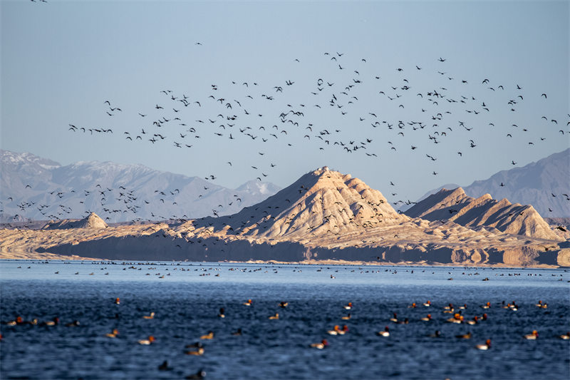 青海省海西州:首批越冬候鳥(niǎo)飛抵柴達(dá)木盆地托素湖