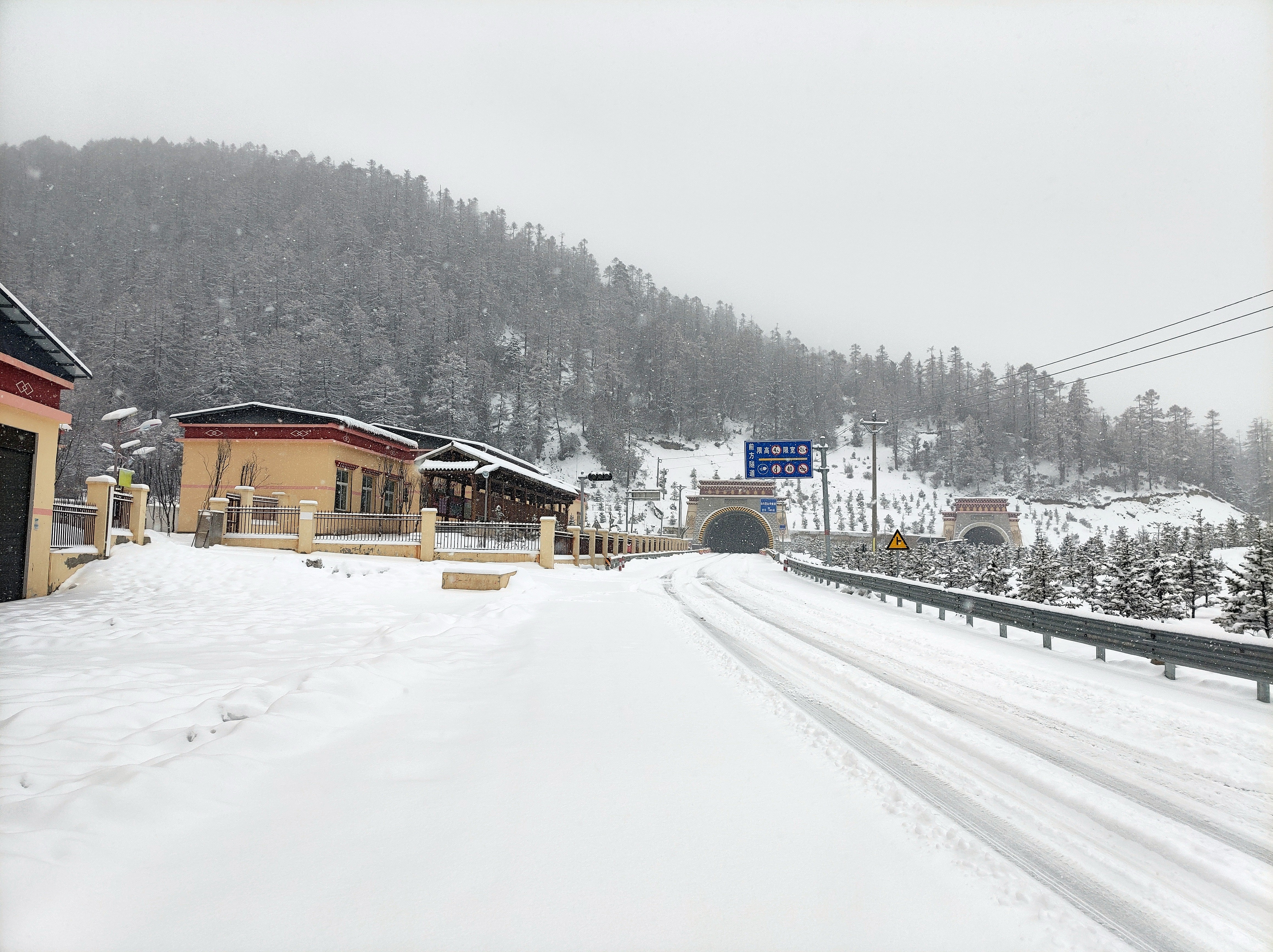 受降雪影響,白馬雪山路段實行交通管制
