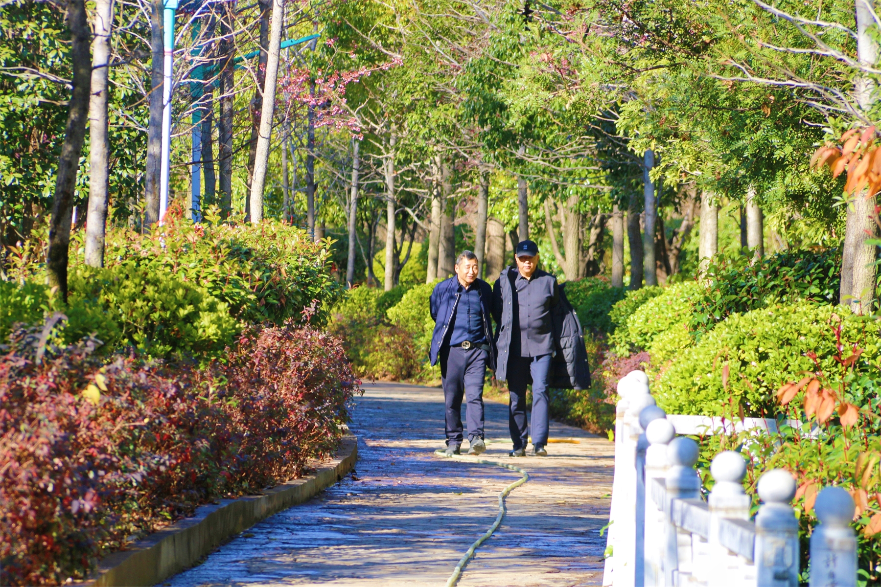 數(shù)九寒天,香格里拉產(chǎn)業(yè)園區(qū)卻是一幅暖冬畫面,陽光和煦,綠樹成蔭,沿江步道兩側(cè)的一樹樹冬櫻開滿粉紅的櫻花,蜜蜂穿梭期間,讓人仿佛置身春日。