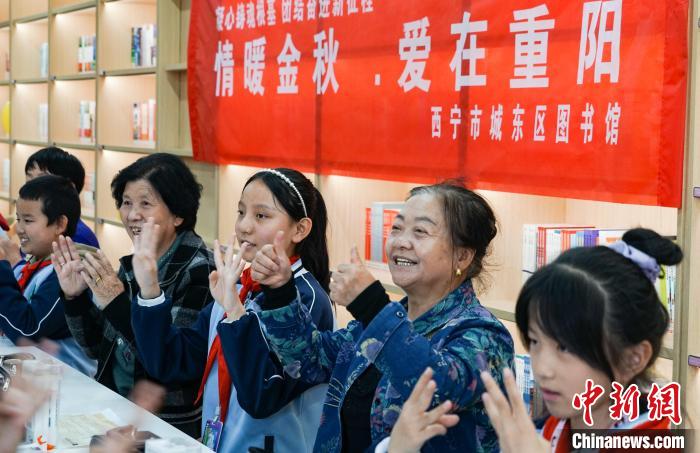 資料圖為西寧老人和小學(xué)生進行數(shù)字游戲,共度重陽節(jié)。馬銘言 攝