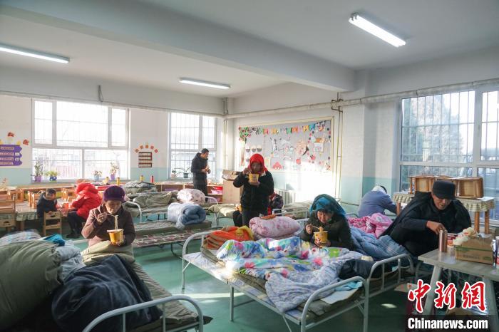 資料圖為在青海省海東市民和縣中川鄉(xiāng)美一小學(xué)的震區(qū)集中安置點內(nèi),受災(zāi)民眾正在吃早餐。馬銘言攝
