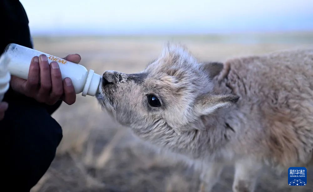 夕陽西下,索南達(dá)杰保護(hù)站映照在一片金黃之中。“太陽下山前,一定要喂完奶,否則天氣太冷、牛奶涼得快,小藏羚羊喝了容易鬧肚子?!闭f話間,駐站巡山隊員才文多杰提著牛奶和奶瓶,匆匆忙忙向保護(hù)站后面的網(wǎng)圍欄走去。