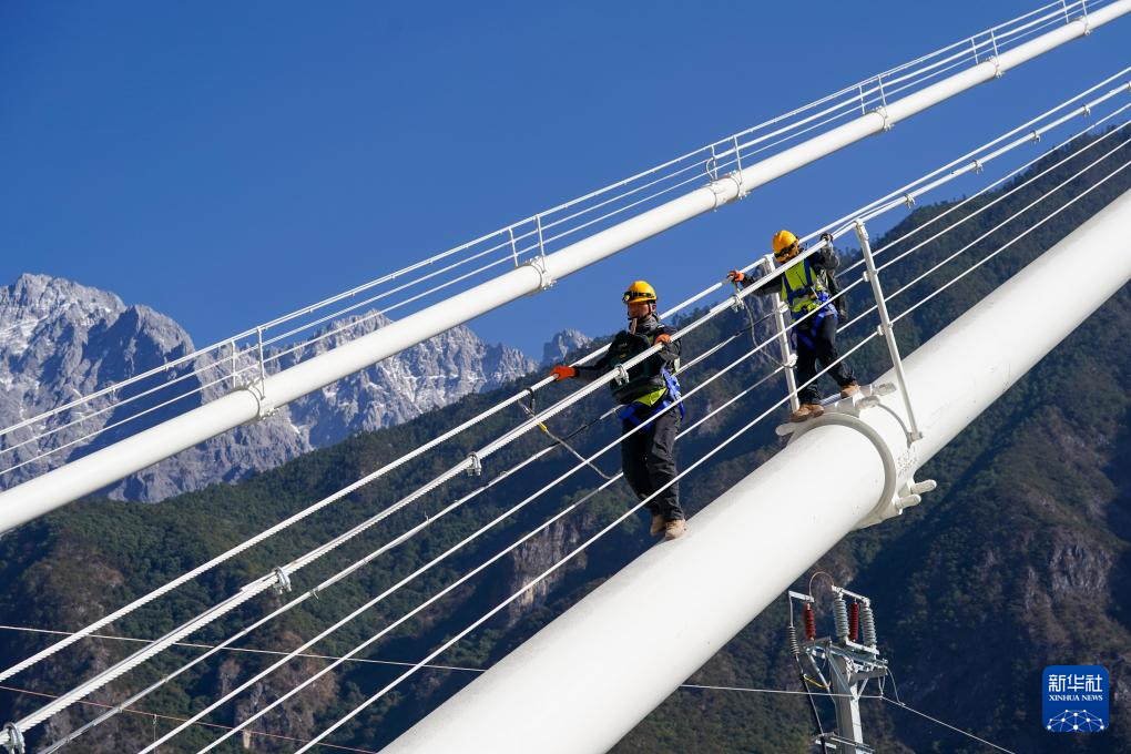 云南麗江至香格里拉鐵路(麗香鐵路)即將迎來(lái)開(kāi)通后的首個(gè)春運(yùn),為確保旅客平安出行,國(guó)鐵昆明局廣通工電段新尚綜合維修工區(qū)班對(duì)虎跳峽金沙江鐵路大橋進(jìn)行全面“體檢”。
