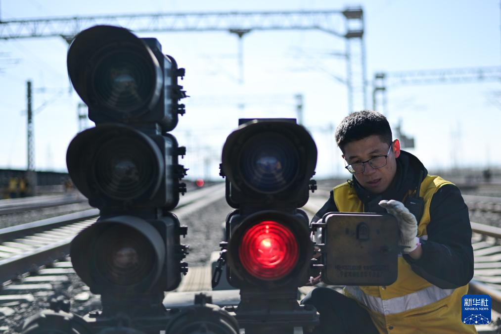 1月29日,格爾木電務(wù)段格爾木東信號(hào)車間察爾汗信號(hào)工區(qū)副工長(zhǎng)張世鐸在檢修信號(hào)機(jī)。新華社記者 張龍 攝