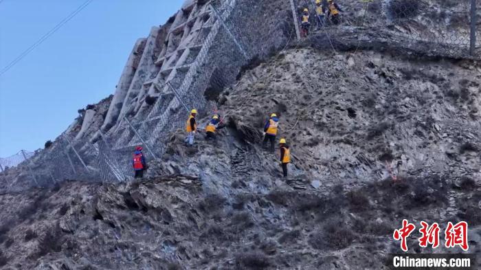 踩著積雪,沿著將近70度的陡坡攀爬一個多小時(shí)后,“攀巖小隊(duì)”終于抵達(dá)距川青鐵路垂直高度達(dá)500多米的巡查點(diǎn)。寒風(fēng)凜冽,大家顧不上休息,抓緊掃除山上的危巖,檢查防護(hù)網(wǎng)安裝情況。這是近日發(fā)生在四川省阿壩州川青鐵路沿線的一幕。