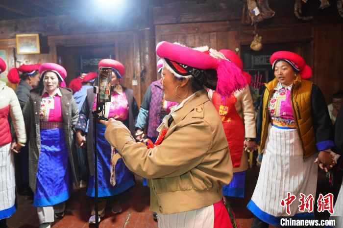 2月20日,賓客通過(guò)網(wǎng)絡(luò)向外界直播傳統(tǒng)藏式婚禮。中新社記者 劉冉陽(yáng) 攝