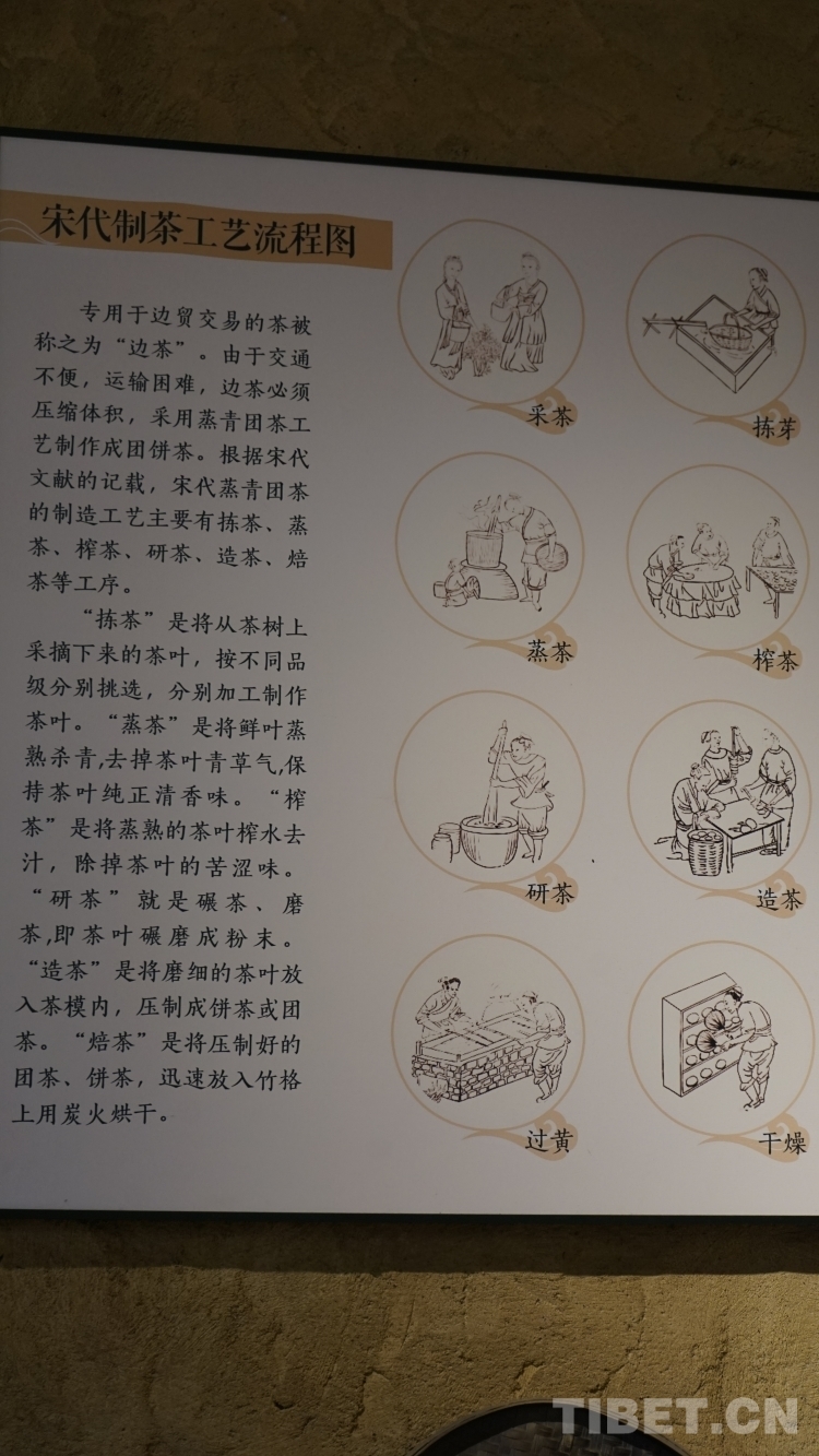 推開茶馬司的大門,出現(xiàn)在眼前的“茶馬司”石碑用漢藏兩種文字記錄著茶馬司的興衰歷史?!八螘r因連年用兵,所需戰(zhàn)馬,多用茶換取。神宗熙寧七年,派李杞入川,籌辦茶馬政事,于名山,以名山茶易馬用……明洪武時,對茶葉實(shí)行官買官銷,由茶馬司主持交易……”