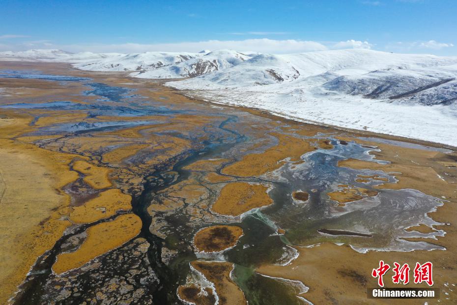 11月15日,航拍青海玉樹(shù)隆寶灘國(guó)際重要濕地冬日旖旎景色。降雪過(guò)后,位于青海省玉樹(shù)藏族自治州玉樹(shù)市境內(nèi)的隆寶灘國(guó)際重要濕地連綿的山巒被白雪覆蓋,與金色的草地和蜿蜒的河流交相輝映,景色旖旎。[詳細(xì)] -