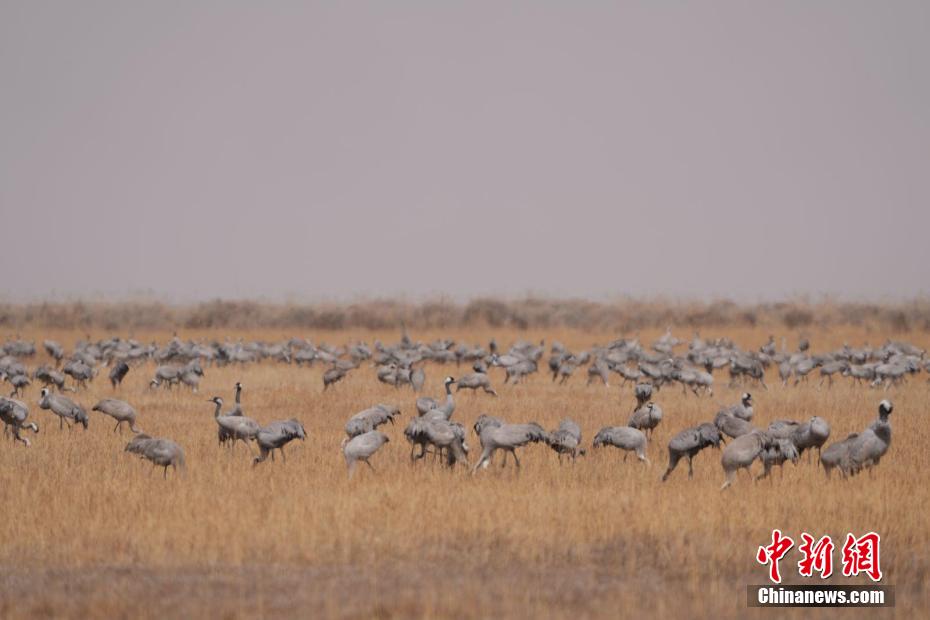 候鳥(niǎo)遷徙季:大批灰鶴聚集青海省都蘭縣